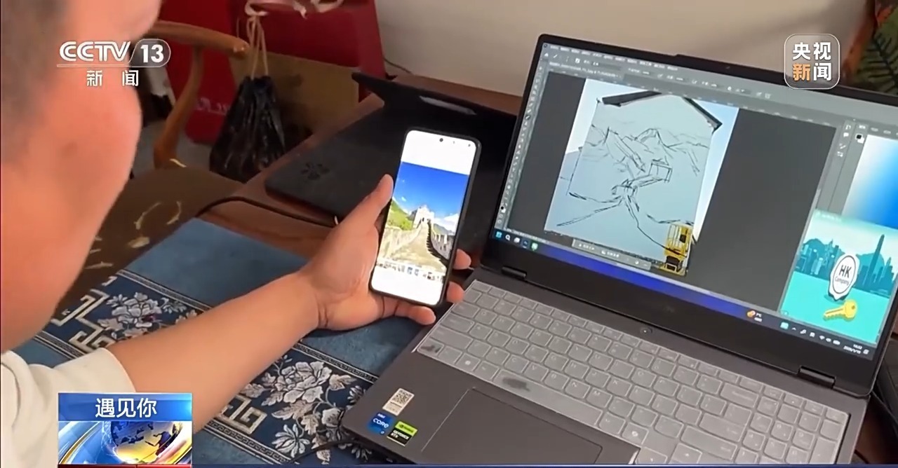 吴承言:更多的是要有一种身临其境的感觉。这是个透视,里面很大,后面是山,长城盘延的效果。所以我要在电脑上提前把效果图做出来。