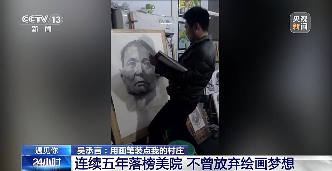 自己的坚持,换来了家人的支持。初中毕业后,吴承言正式开始学习美术专业,并立志要考取中央美术学院,然而,连续五年,他都未能如愿。