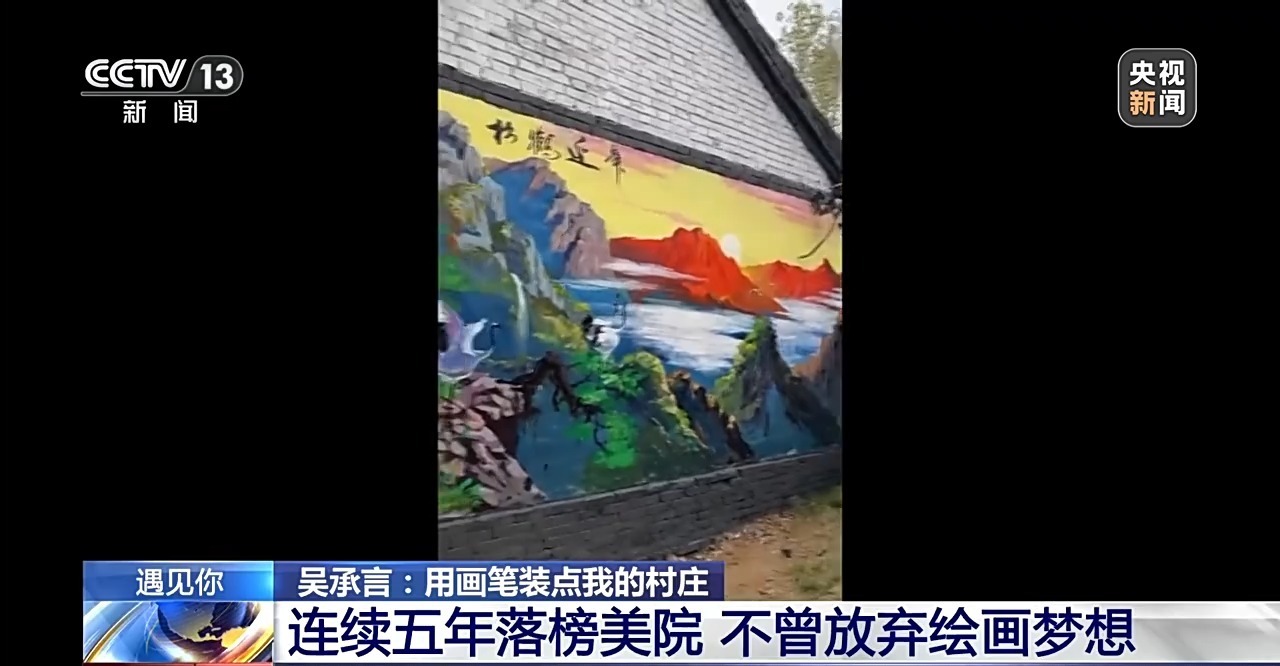 废品堆里磨画技,农村墙上开画展。对绘画的热爱,让吴承言在五次落榜后依然执着,从小到大,他从未放下画笔,而如今,在自己的村庄,他找到了独属于他的完美画布。吴承言还打算适时翻新重画,让吴营村的墙绘跟上大家的审美,让这里,真正成为一座“没有围墙的美术馆”。(总台记者 吴洪祎 刁杰 马荣达 商丘台)